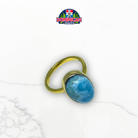 Adjustable 925 Silver Ring with Amber and Larimar Ends- Dominican Jewlery