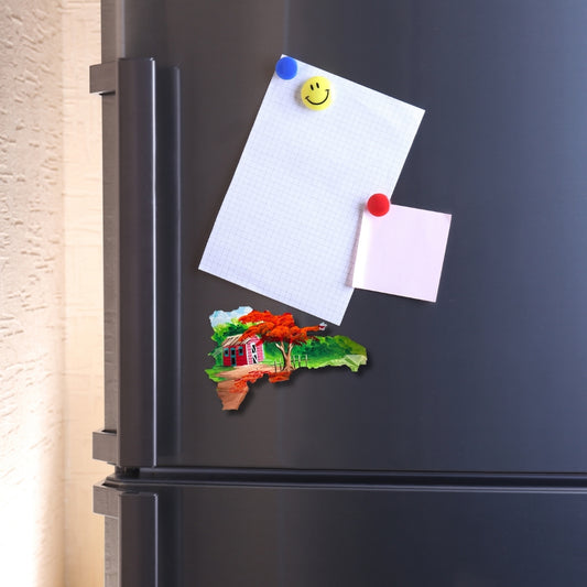 Dominican Island-Shaped Magnet with Scenic Country Painting