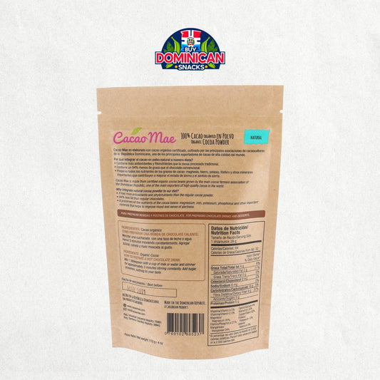 Cacao en polvo orgánico dominicano: 100 % puro, sin azúcar y rico en nutrientes.