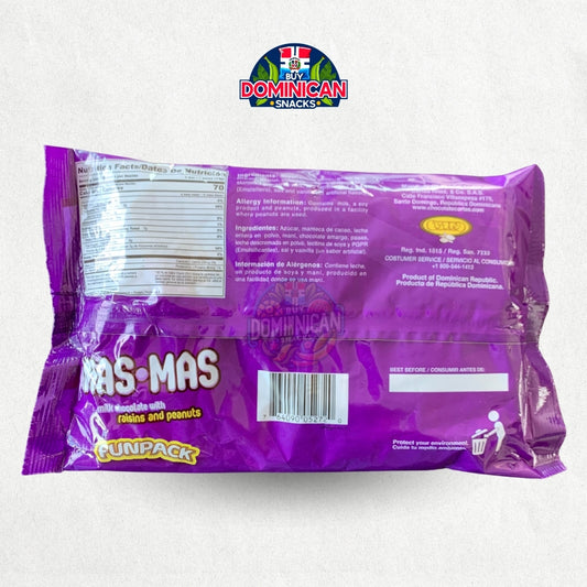 Cortes MAS MAS Barras de Chocolate con Leche con Pasas y Maní Tamaño Divertido 312g - Chocolates Dominicanos
