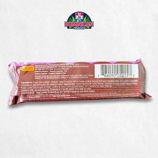 Cortes Mas Mas Chocolate con Leche con Pasas y Maní 35g - Candy Bar Dominicana