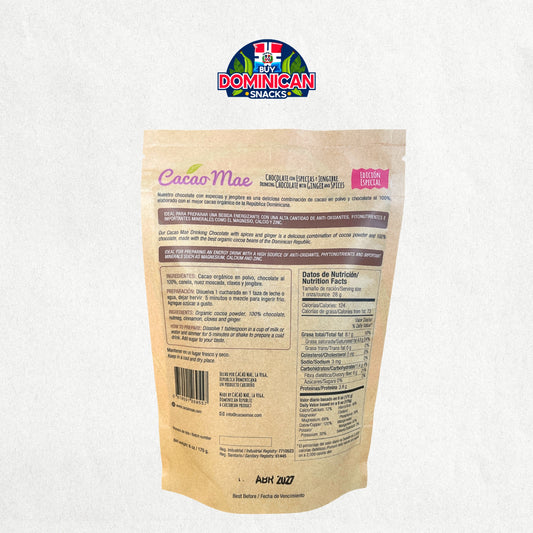 Cacao en polvo orgánico con jengibre y especias – Edición especial de chocolate dominicano, 177 g