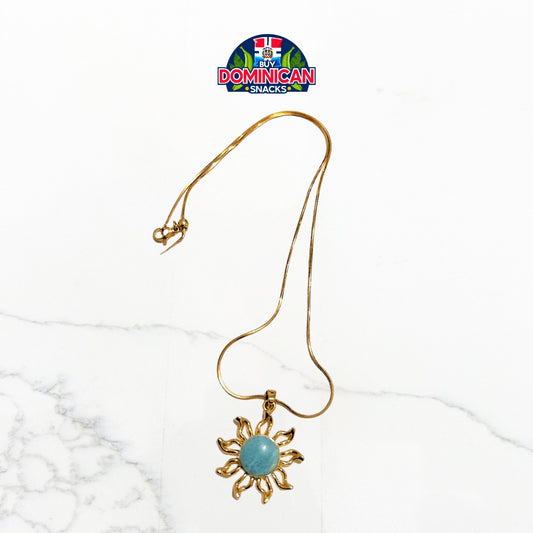 Collar Sol bañado en oro con larimar: un toque radiante de serenidad