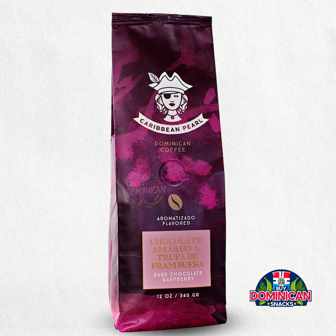 Café con sabor a chocolate negro y frambuesa Caribbean Pearl: 12 oz de café 100 % arábica con sabor dominicano