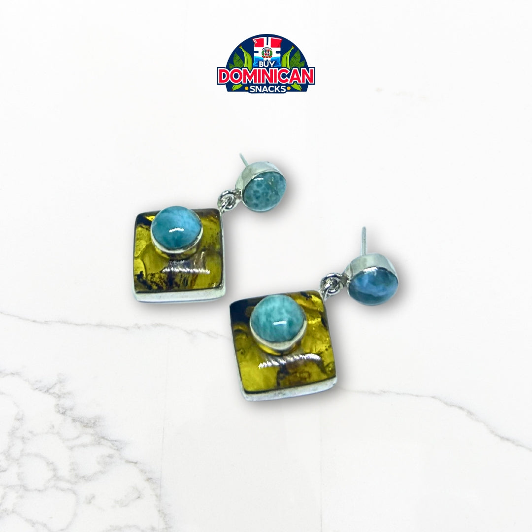 Pendientes de marco de ámbar con esfera de larimar: una combinación perfecta de elegancia dominicana