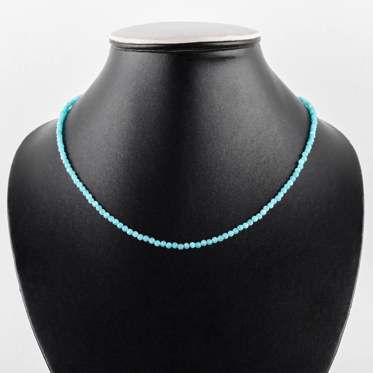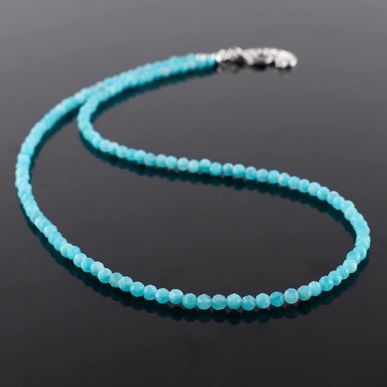 Gargantilla de cuentas de larimar ZEMBIENCE, piedras preciosas naturales facetadas de 3 mm, latón bañado en plata con revestimiento electrolítico, extensor de 40,6 cm + 5 cm, cierre de mosquetón, regalo minimalista.