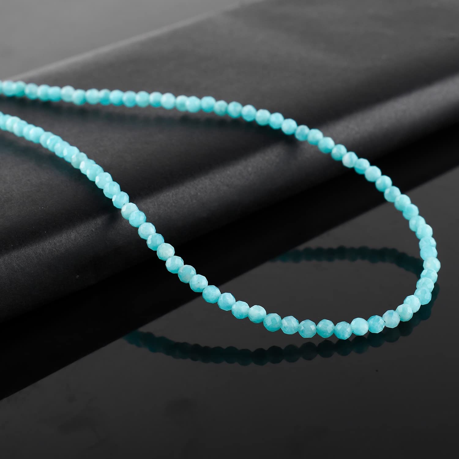 - Larimar natural con brillo sutil: las cuentas facetadas de 3 mm captan la luz suavemente, lo que le da un aspecto refinado sin sentirse llamativo.
