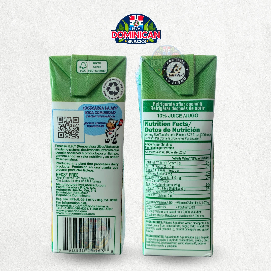 - 🍍 Bebida de Jugo de Piña y Guayaba Rica 200ml - Fusión tropical de delicias de piña y guayaba.