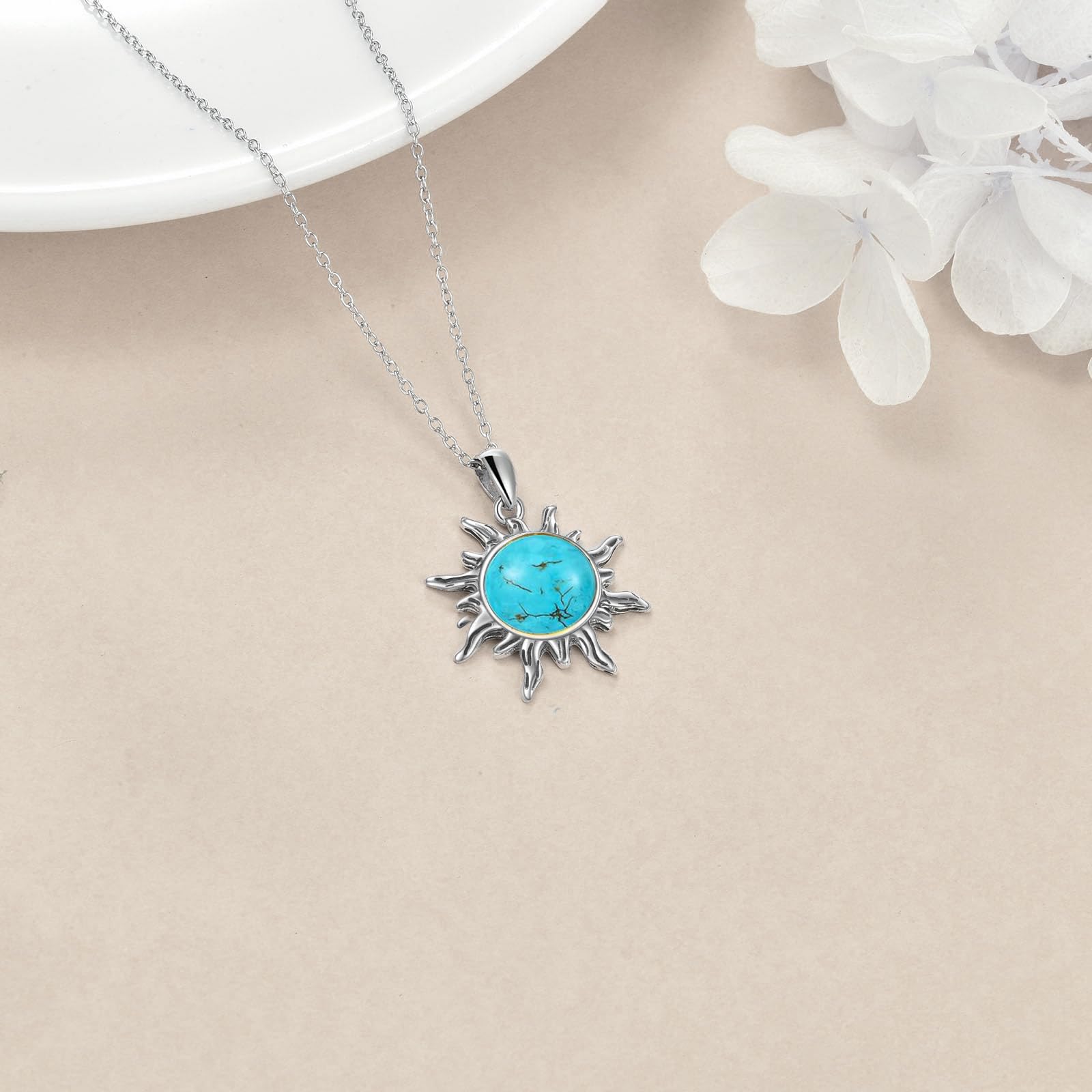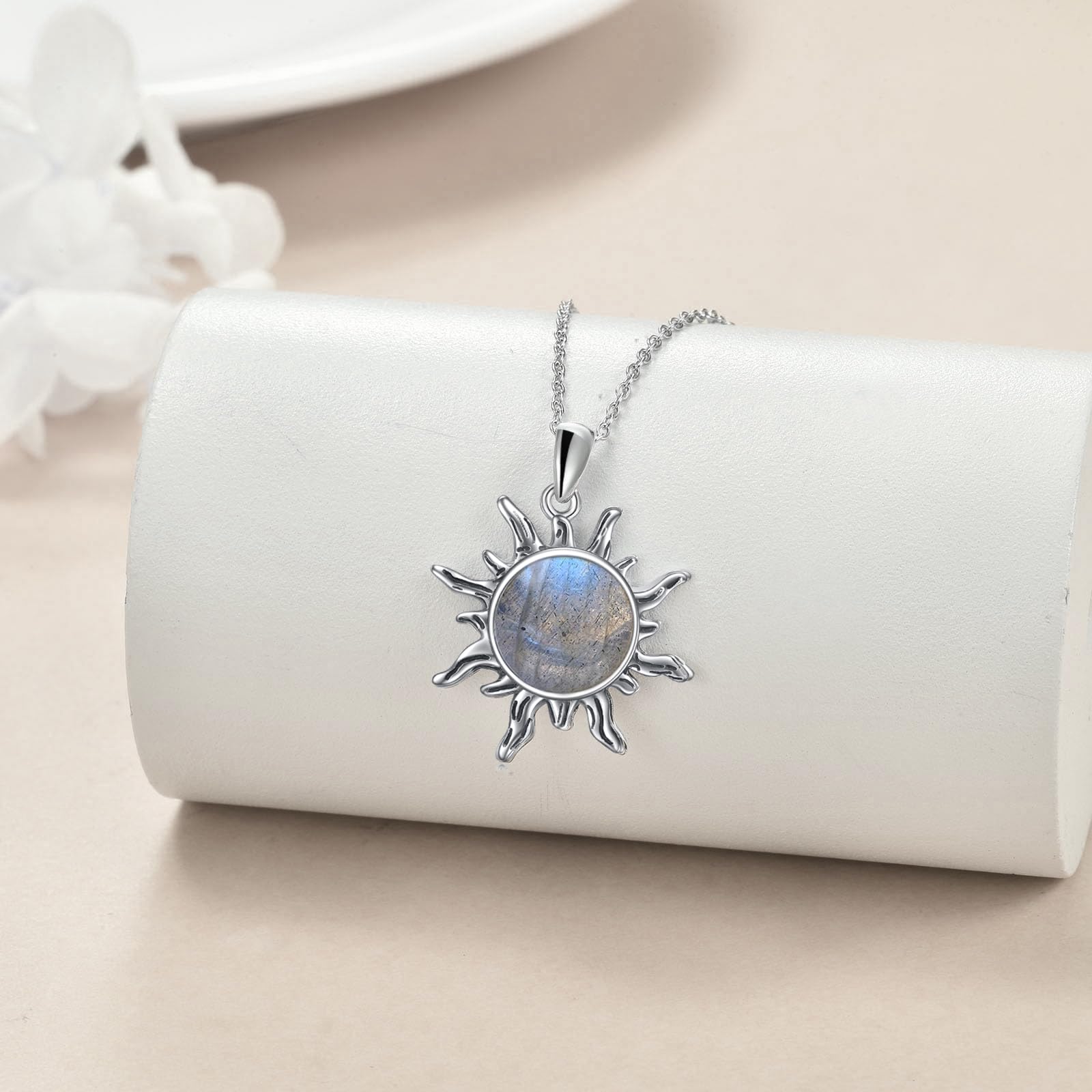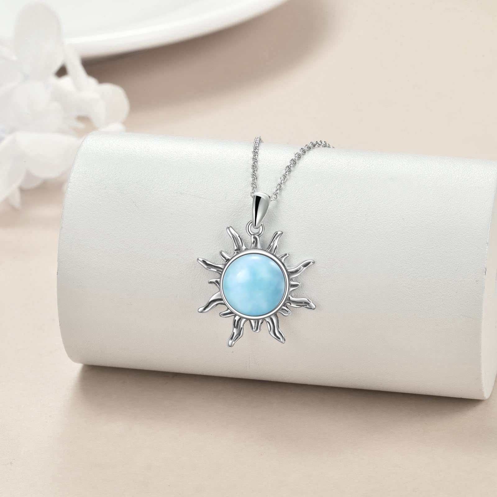 Collar de sol de larimar TIGER RIDER en plata de ley 925, cadena de 45 cm + 5 cm, caja de regalo, joyería para mujer
