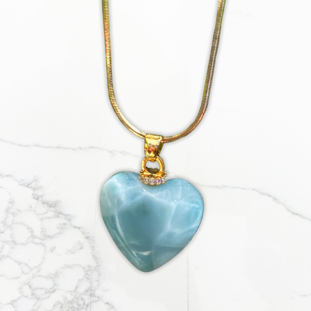 💙 Larimar Heart Necklace: Embrace the serene beauty of the Larimar Heart Necklace, a stunning piece that captures the tranquil essence of the ocean.