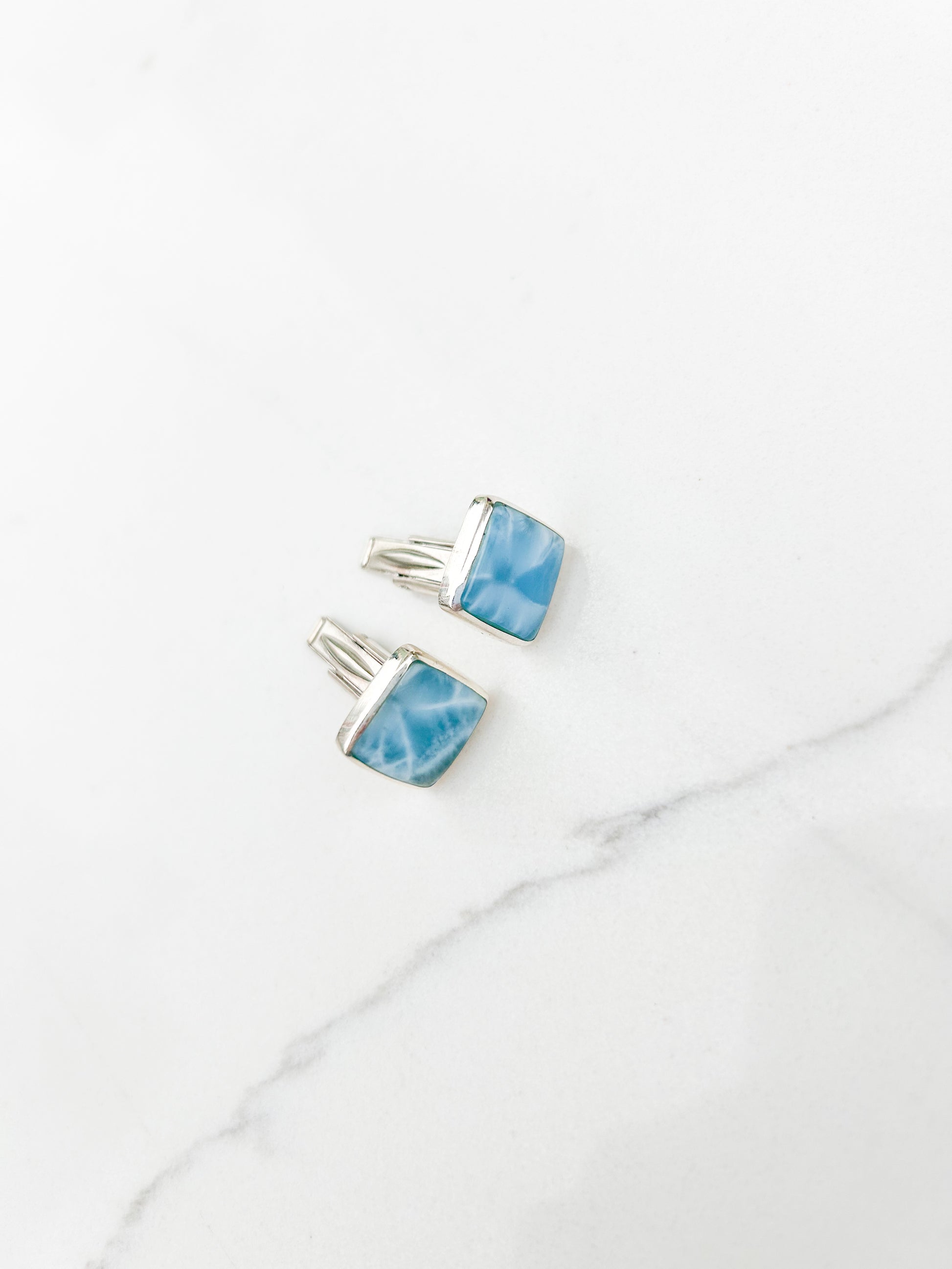 925 Silver Larimar Cufflinks- timeless sophistication