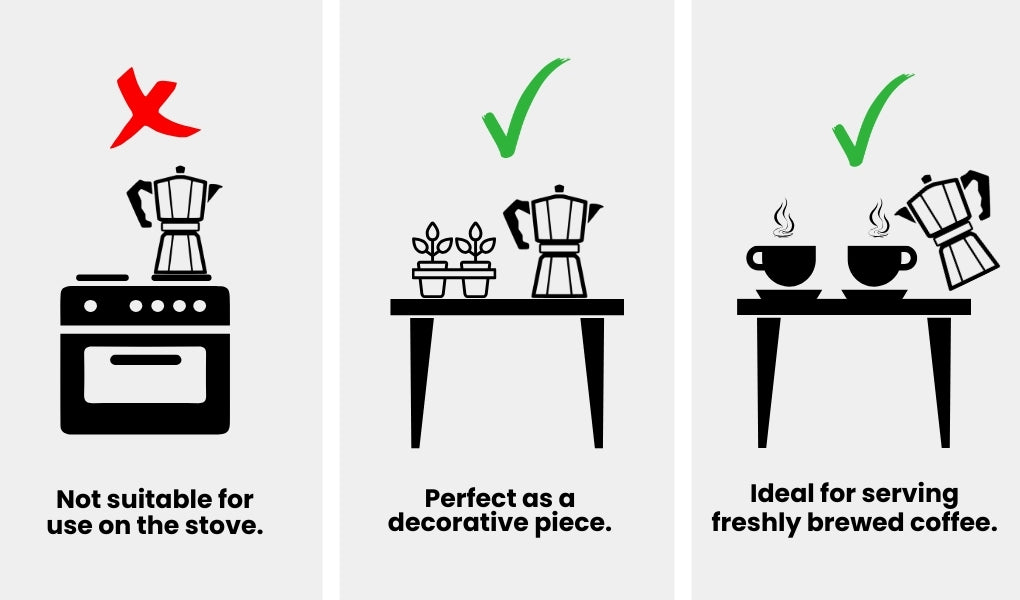 ⚠️ Warning: This coffee pot is not designed for use on the stove or any heat source. It is intended solely for serving and decoration. Using it on a stove may damage the pot and compromise its decorative finish