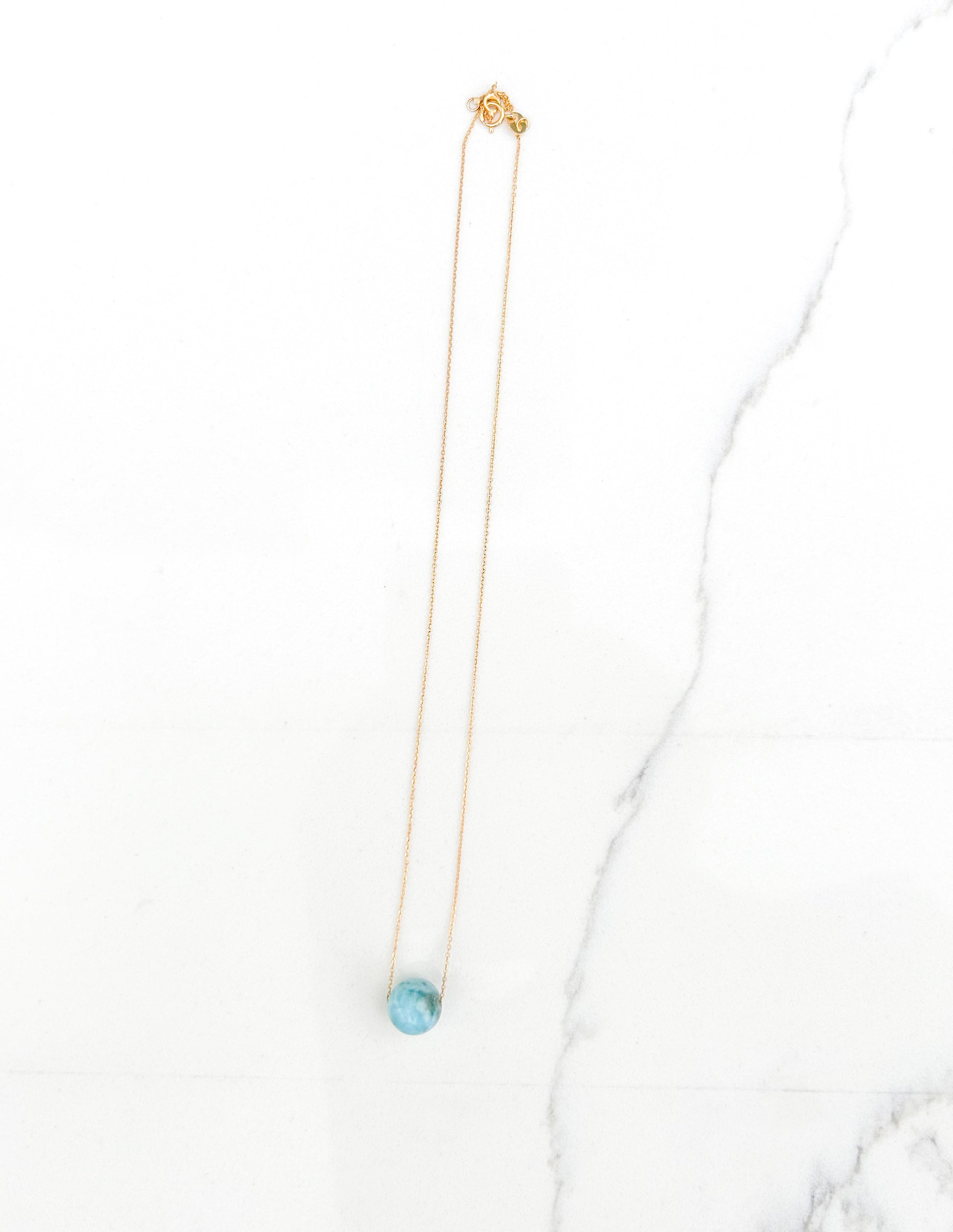 Gold-Plated 925 Silver Fine Chain with Larimar Sphere- Dominican larimar jewlery