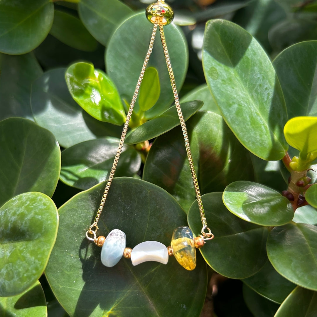 Adjustable Larimar and Amber Bracelet: A Stylish Fusion of Nature