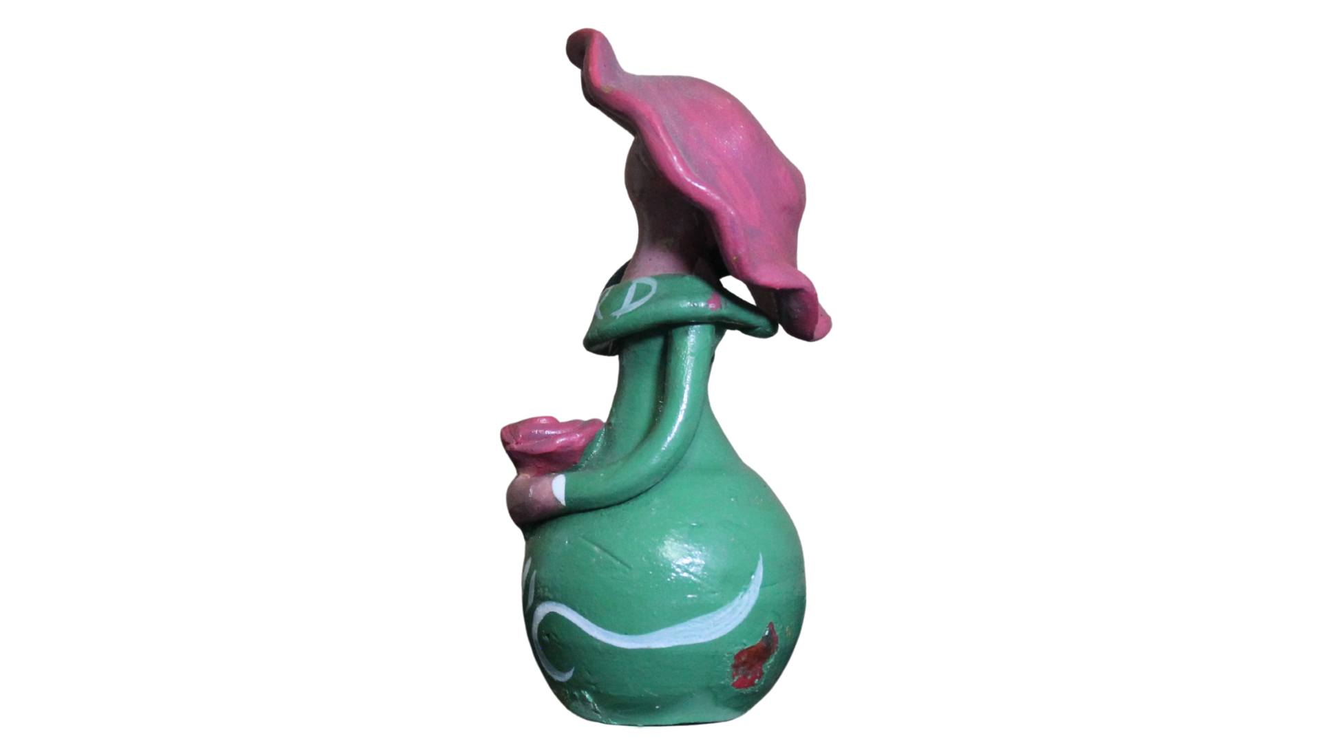 Embrace the beauty and cultural heritage of the Dominican Republic with this handcrafted figurine. Featuring a woman adorned in a vibrant green dress, holding a delicate rose, and topped with a charming pink hat, this piece represents the warmth and spirit of Dominican craftsmanship. The figurine is marked with the 'R.D.' initials, symbolizing pride in the Dominican Republic.