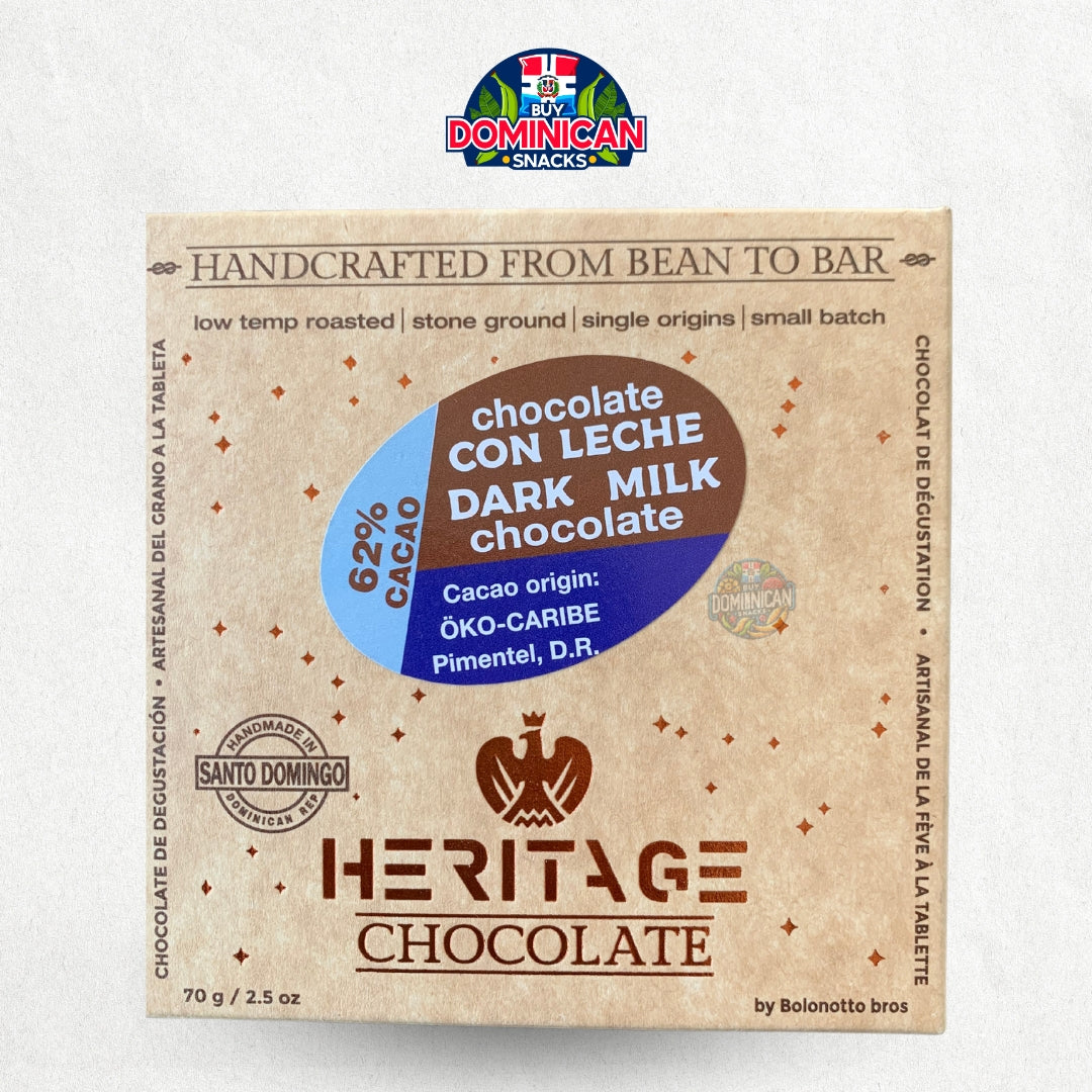 Indulge in the heritage of Dominican chocolate with Heritage Chocolate Dark Milk Chocolate. Order now to savor this handcrafted masterpiece, bringing the unique flavors of the Dominican Republic to your chocolate experience.