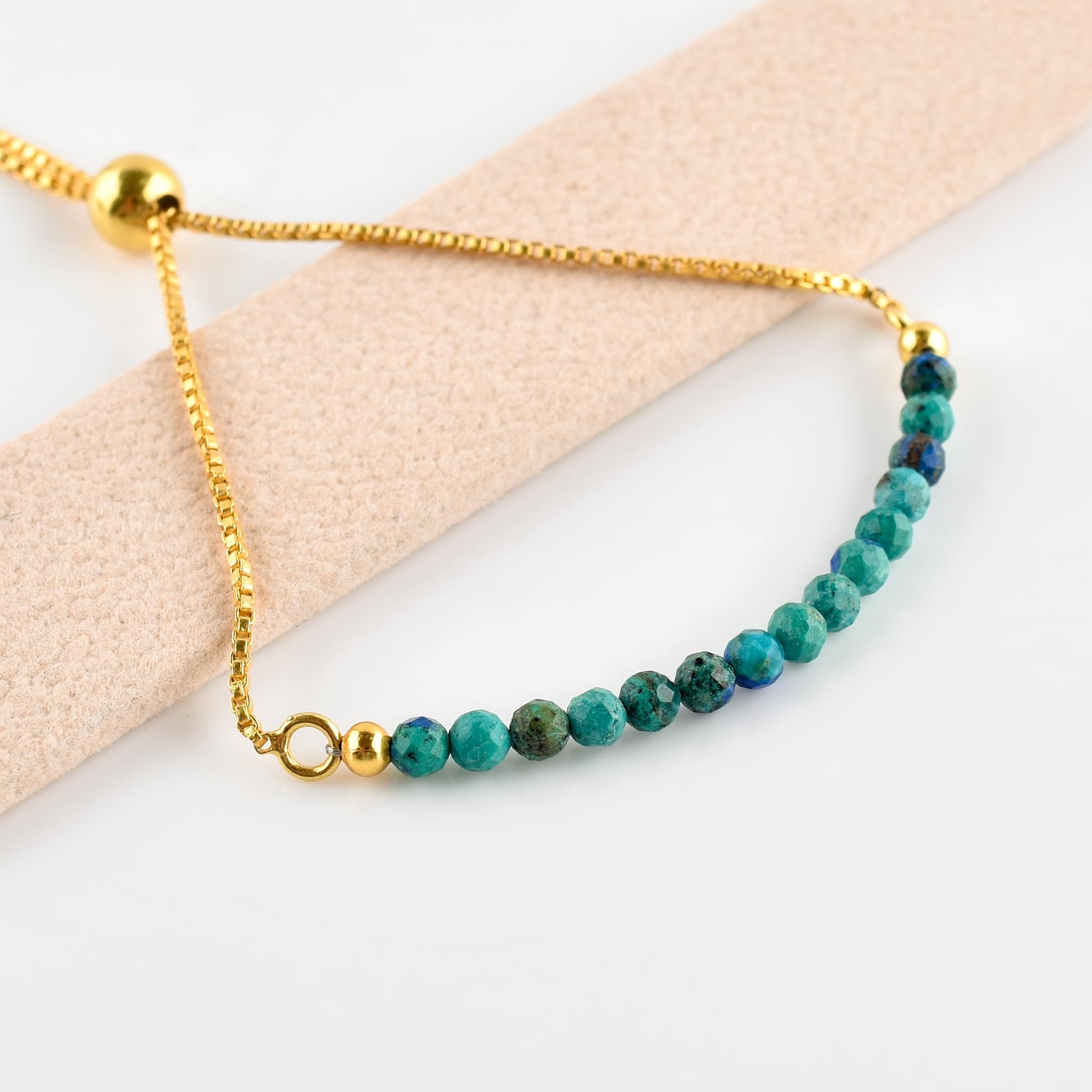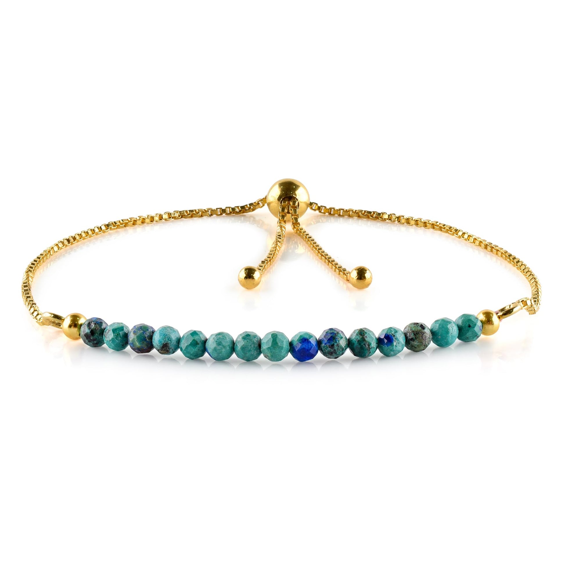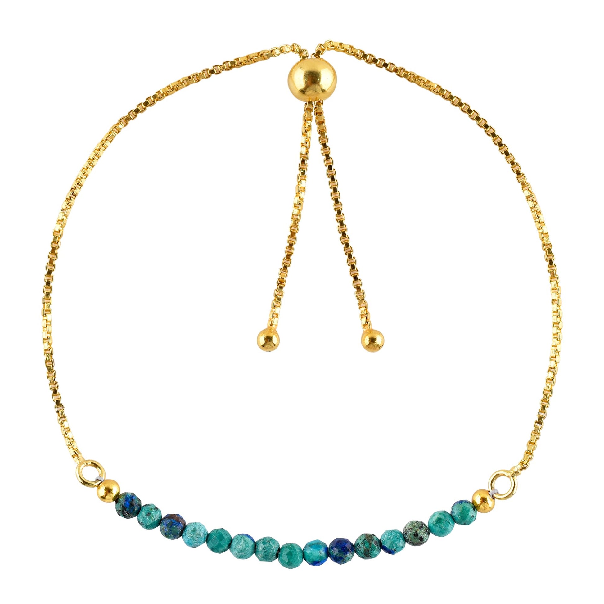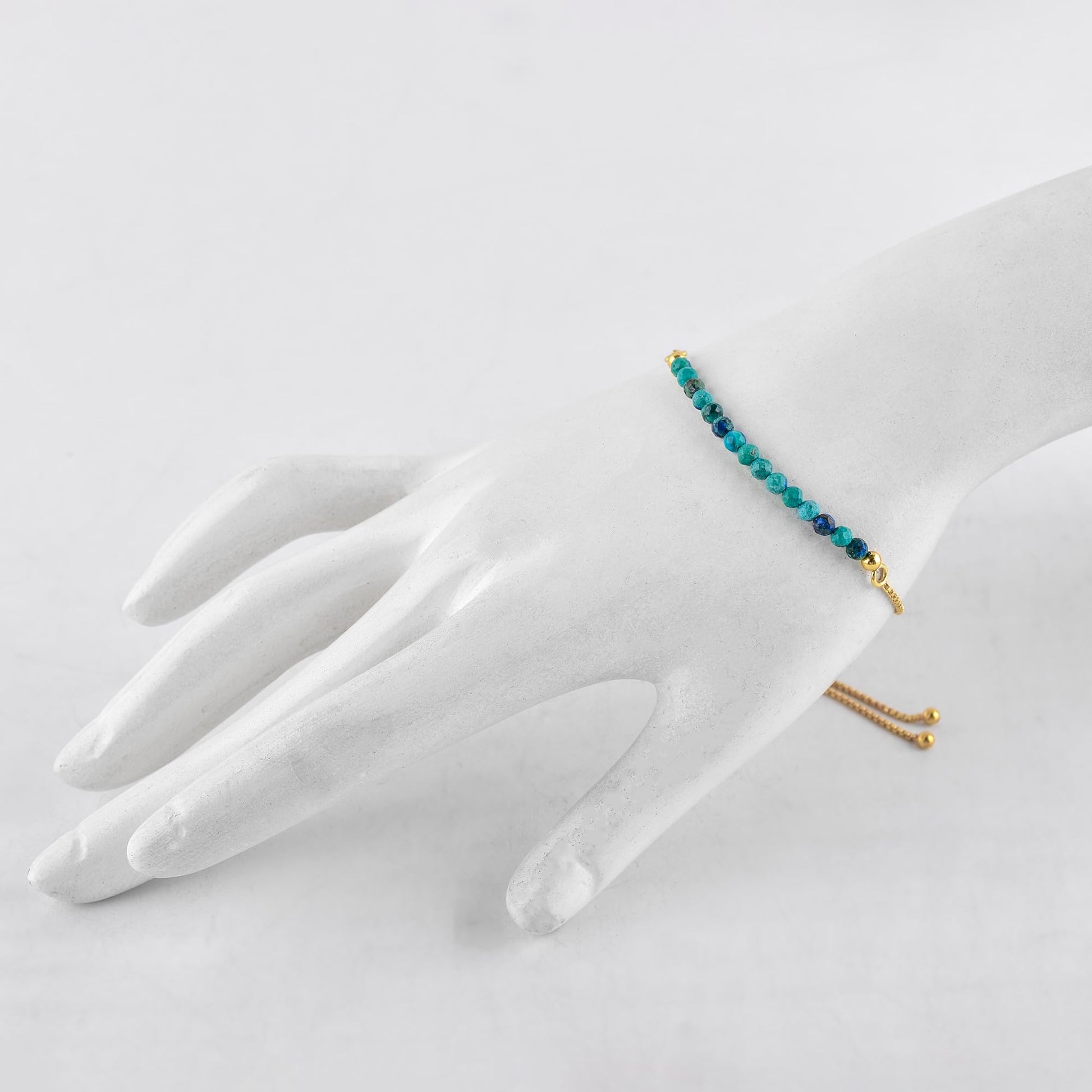 InfinityGemsArt Larimar Slider Bracelet, 14K Gold-Plated Brass, 3mm Faceted Micro Beads, Adjustable 6–9”, Dainty Birthstone Jewelry Gift for Women