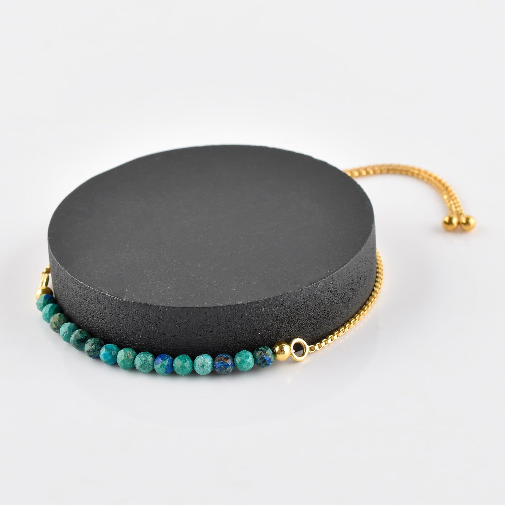 This dainty Larimar slider bracelet is the kind of piece that quietly upgrades your whole look. Faceted micro beads add a soft shimmer, while the 14K gold-plated slider chain keeps it sleek, modern, and easy to wear. Each natural gemstone is slightly different, so your bracelet feels personal—minimalist, but still special.