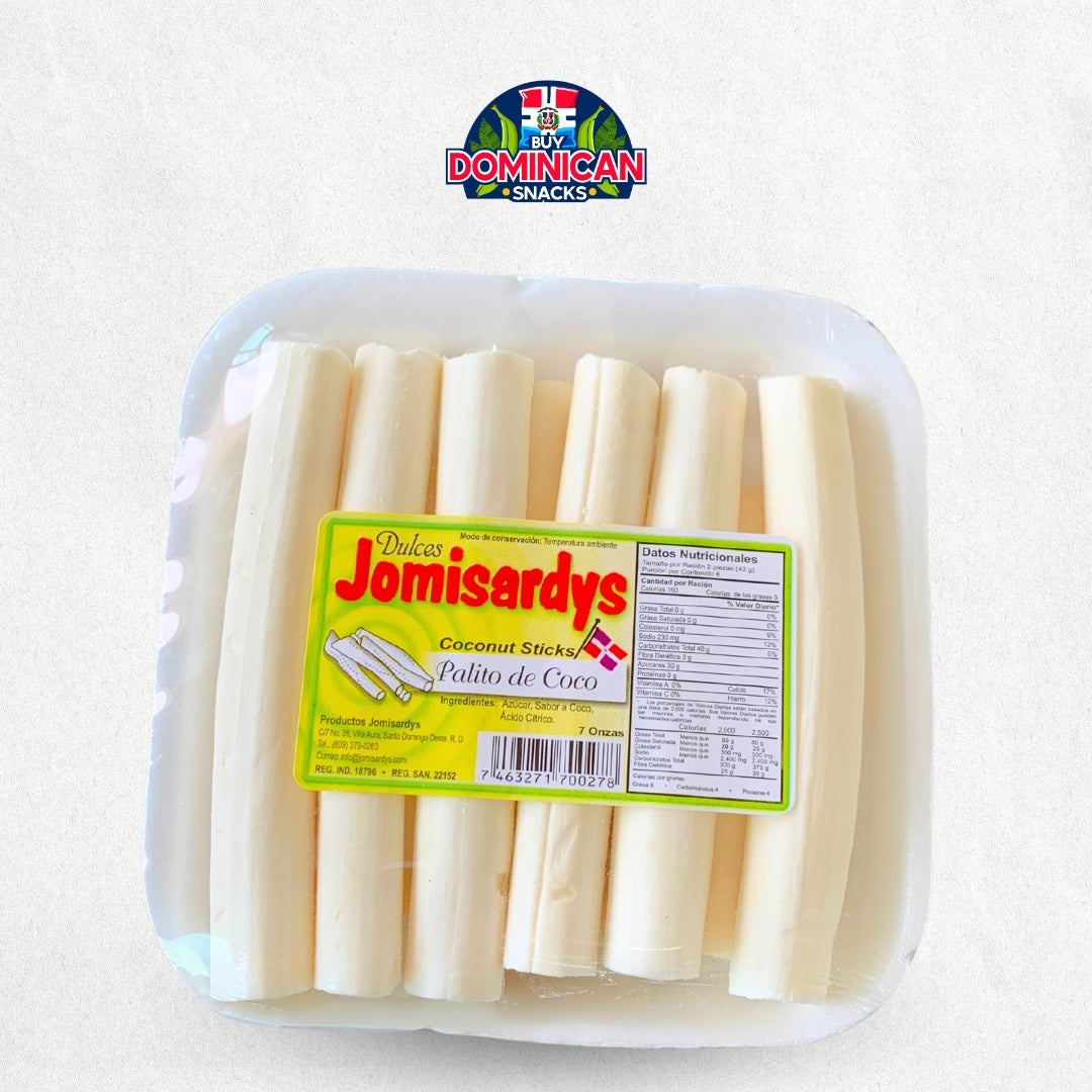 Satisfy your cravings for tropical goodness with Jomisardys Coconut Sticks - Palitos de Coco. Order now to enjoy the 42g pack and savor the authentic taste of 100% Dominican coconuts.