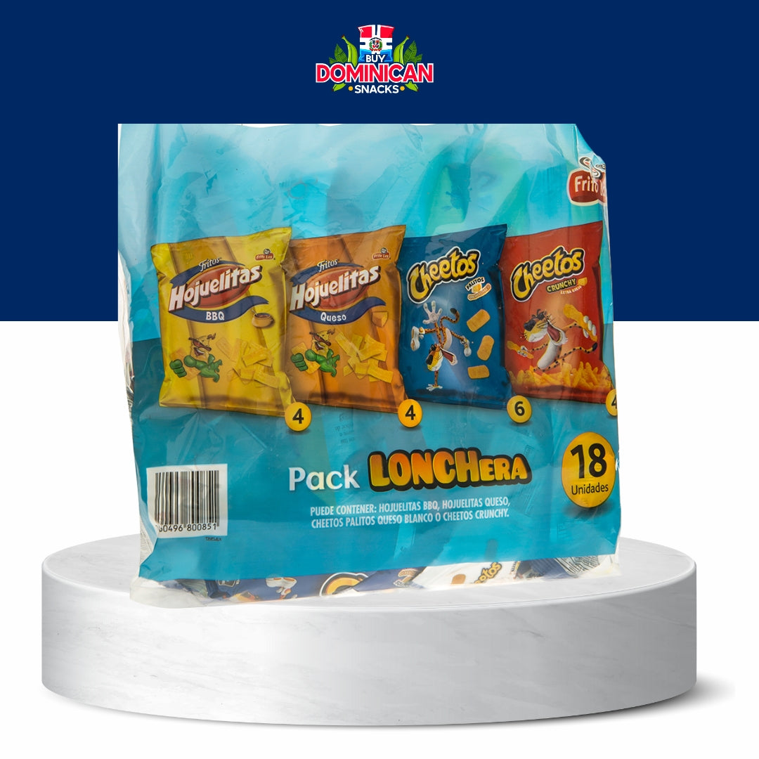 Lonchera Pack 18 Units Hojuelitas BBQ, Hojuelita Queso, Cheetos Palitos Queso Blanco, Cheetos Crunchy Extra Queso