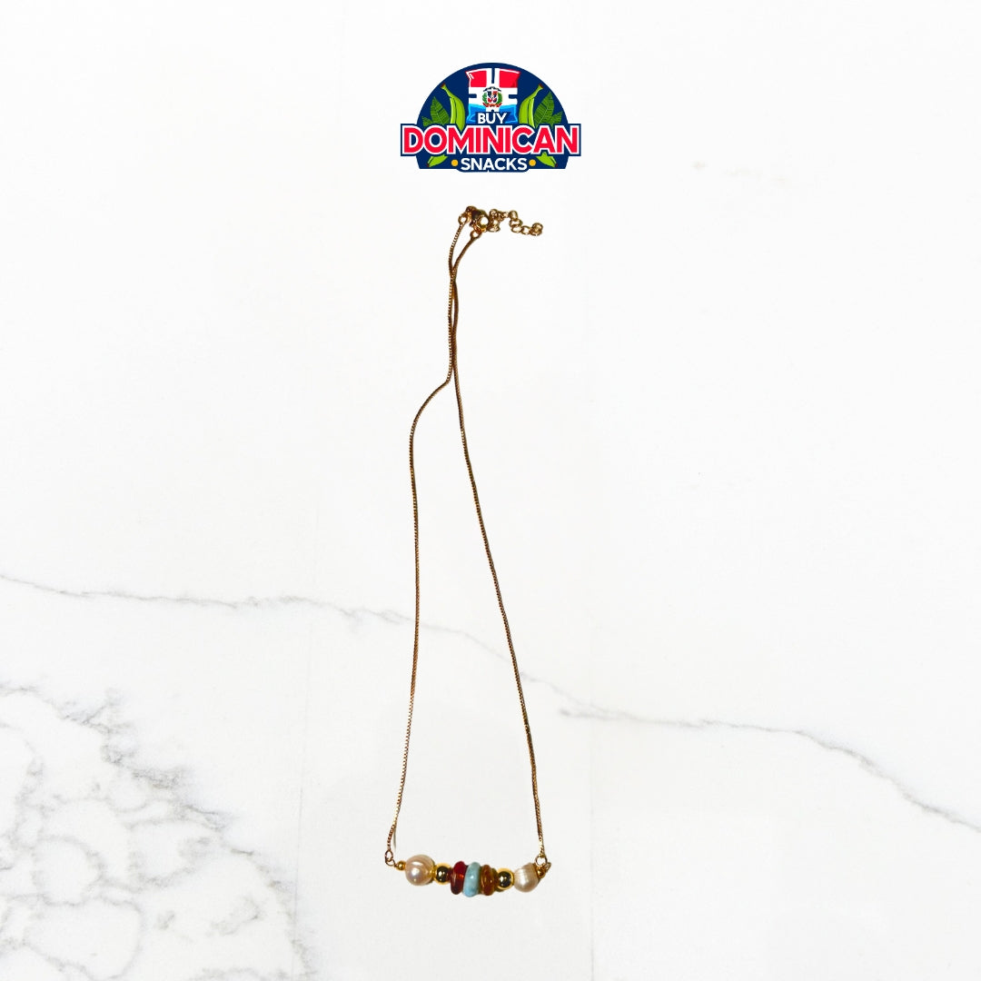 - 🌊 Gold-Plated Pearl, Larimar, and Amber Necklace: Embrace the beauty of nature with this exquisite gold-plated necklace, featuring a harmonious combination of pearl, Larimar, and amber.