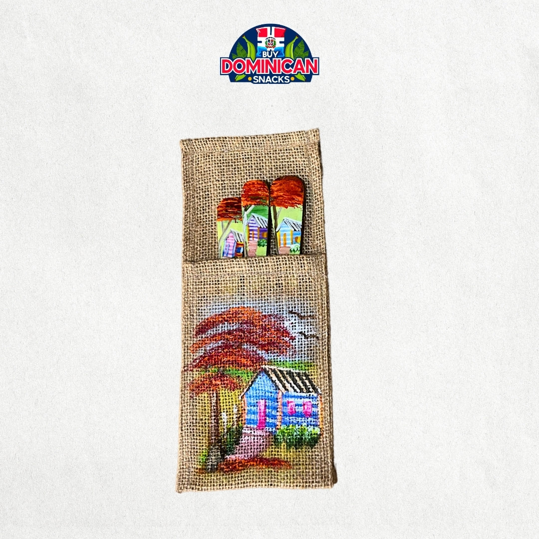 Elevate your dining experience with this beautifully handcrafted jute cutlery holder, adorned with a vibrant flamboyant flower design. Combining practicality with cultural charm, it not only keeps your cutlery organized but also adds a touch of Dominican elegance to your table. Perfect for your own home or as a thoughtful gift for art and culture enthusiasts.