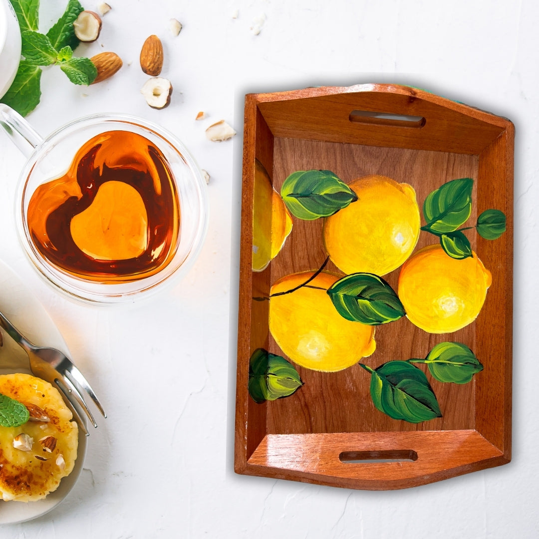 - 🎨 Handcrafted Artistry: Meticulously crafted by skilled artisans, this tray showcases intricate lemon designs that add a burst of color and charm to any occasion.
